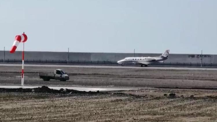 Havalimanında uçuş kontrol uçağı ile 3 bin metre uzunluğunda, 45 metre genişliğindeki pistte seyrüsefer cihazlarının devreye alınması için başlatılan test uçuşları sürüyor.