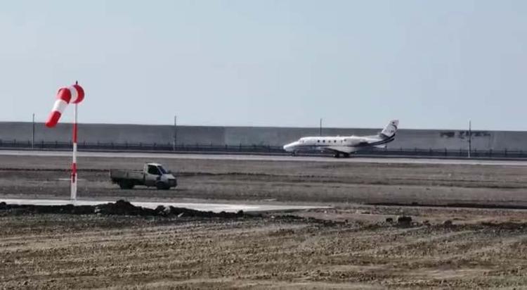 Uçağı pistin merkez hattına yönlendiren ILS cihazlarının kontrolleri için gelen test uçağıyla ilk iniş, başarıyla gerçekleştirildi.