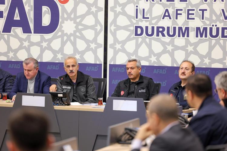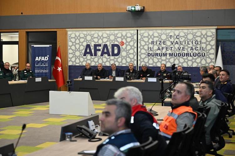 Ulaştırma ve Altyapı Bakanı Abdulkadir Uraloğlu ile Gençlik ve Spor Bakanı Osman Aşkın Bak sel afetinin etkili olduğu Rize'nin Çamlıhemşin ilçesinde incelemelerini sürdürdü. Bakanlar Uraloğlu ile Bak’ın başkanlığında, Vali İhsan Selim Baydaş, AFAD Başkanı Ali Hamza Pehlivan ve ilgili kurum temsilcilerinin katılımıyla İl Afet ve Acil Durum Müdürlüğü’nde koordinasyon toplantısı gerçekleştirildi. Toplantıda sel ve heyelanlardan etkilenen bölgelerde yapılan çalışmalar, tespit edilen hasarlar ve alınması gereken tedbirler değerlendirildi. Sürecin tüm aşamaları yakından izlenirken, kurumlar arası iş birliği ve koordinasyonun en üst seviyede tutulduğu vurgulandı. Toplantıya ayrıca Rize Belediye Başkanı Rahmi Metin, DSİ Genel Müdürü Mehmet Akif Balta, AK Parti Rize İl Başkanı Yılmaz Katmer ve diğer kurum temsilcileri de katıldı.