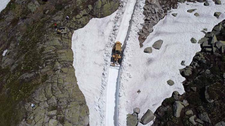Kentin yüksek kesimlerinde İl Özel İdaresi ekipleri, kıştan kalan ve çığ nedeniyle metrelerce yüksekliğe ulaşarak yayla yollarına dolan kar kütlerini temizlemek için çalışmalarını sürdürüyor.
