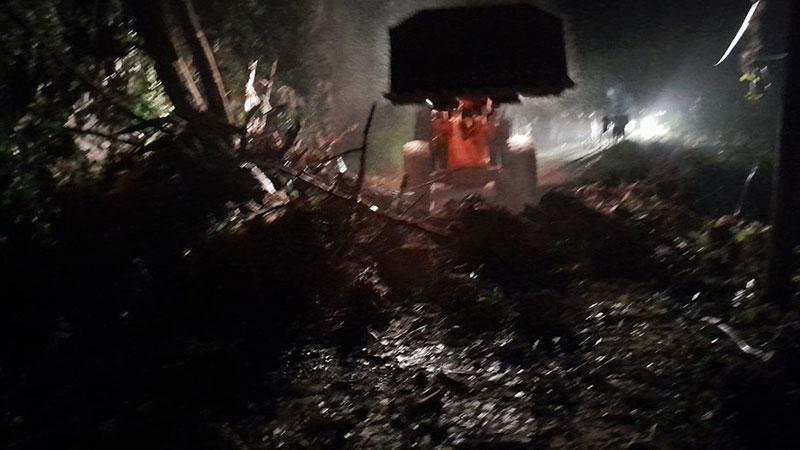 İş makineleriyle yapılan temizlik çalışmaları sonucu yol kısa sürede yeniden ulaşıma açıldı.