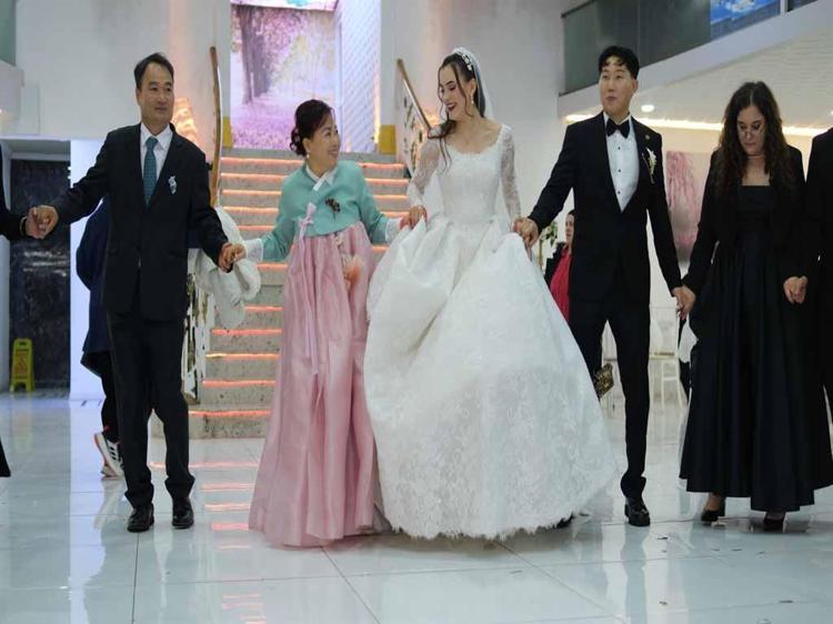 Kore’de düğün kültürü olmadığını ancak çok mutlu olduğunu söyleyen damat Kim, “Kore'de kesinlikle böyle bir şey yok, yani çok kısa süren bir düğün gelenekleri var. Bu yüzden şu anda çok heyecanlıyım ve çok eğlenceli bir kültür. Ülkeler, şehirler hiçbir şekilde önemli değil, yani. Ruh eşini bulunca bu iş oluyor” diye konuştu.