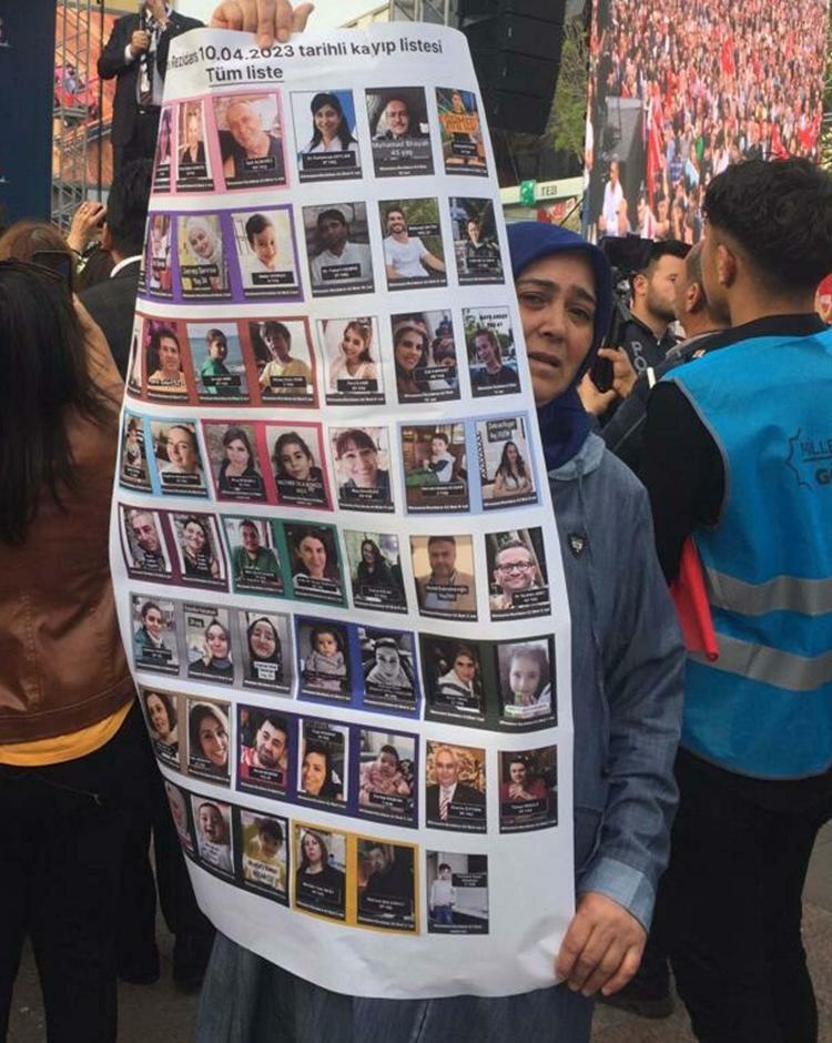Sağlıklı bir şekilde haber alamıyoruz. Mezarlıklara, hastanelere baktık ama eşleşme yok, ulaşamıyoruz. Belki birileri görür, bize yardımcı olur diye evin önüne kendilerinden haber alınamayan 55 kişinin pankartını yaptırıp, astım. Ancak hiçbir bilgi yok. Hiç kimse için bir gelişme yok. Sanki herkesin üzerinde ölü toprağı var gibi. Seçimlerden sonra Meclise gideceğim. Mitinglere de balkonuma astığım pankartın küçüğünü yaptırıp, götürüyorum" dedi.