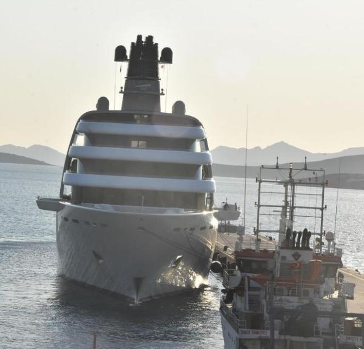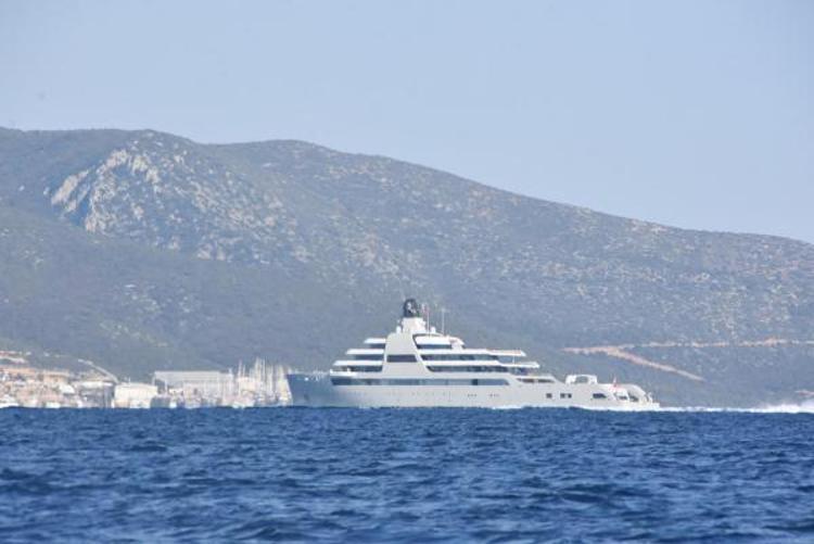 Rus milyarder Roman Abramoviç'in Almanya'da tersanede inşa edilen, Bermuda Adaları bayraklı, 430 milyon sterlinlik yatı 'My Solaris', saat 11.00 sıralarında Datça'nın Fener Adası açıklarına geldi.