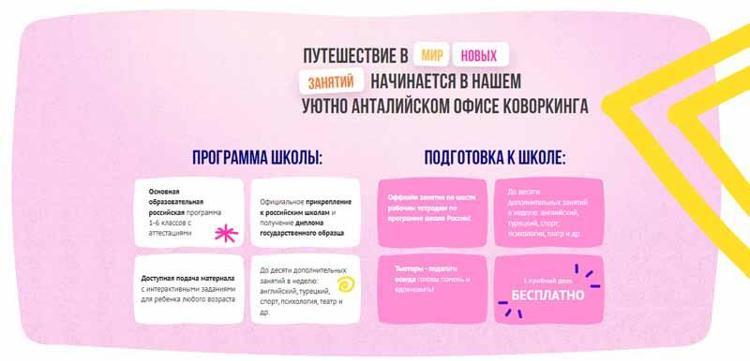 Rusça broşürlerde, eğitim yılı açılışına az zaman kaldığı, 6-14 yaş grupları için kontenjanların neredeyse tükendiği, acele edilmesi gerektiği belirtilerek, Türk okulları da şu şekilde kötüleniyor; 'Özel Türk okullarından üç kat daha ucuz ve on kat daha kaliteli. 6-7 yaş arası çocuklar için okul hazırlık. Rusya Federasyonu Okulu 1-7. Sınıflar. En iyi eğitim platformu ve profesyonel öğretmenler. Rusya Federasyonu'ndaki bir okula resmi bağlılık Rusya ve Türkiye'den ayrılmadan sertifikayı geçme. Çocukların anadilinde uyumlu gelişimi ve sosyalleşmesi. Yatılı eğitim de mevcuttur.'