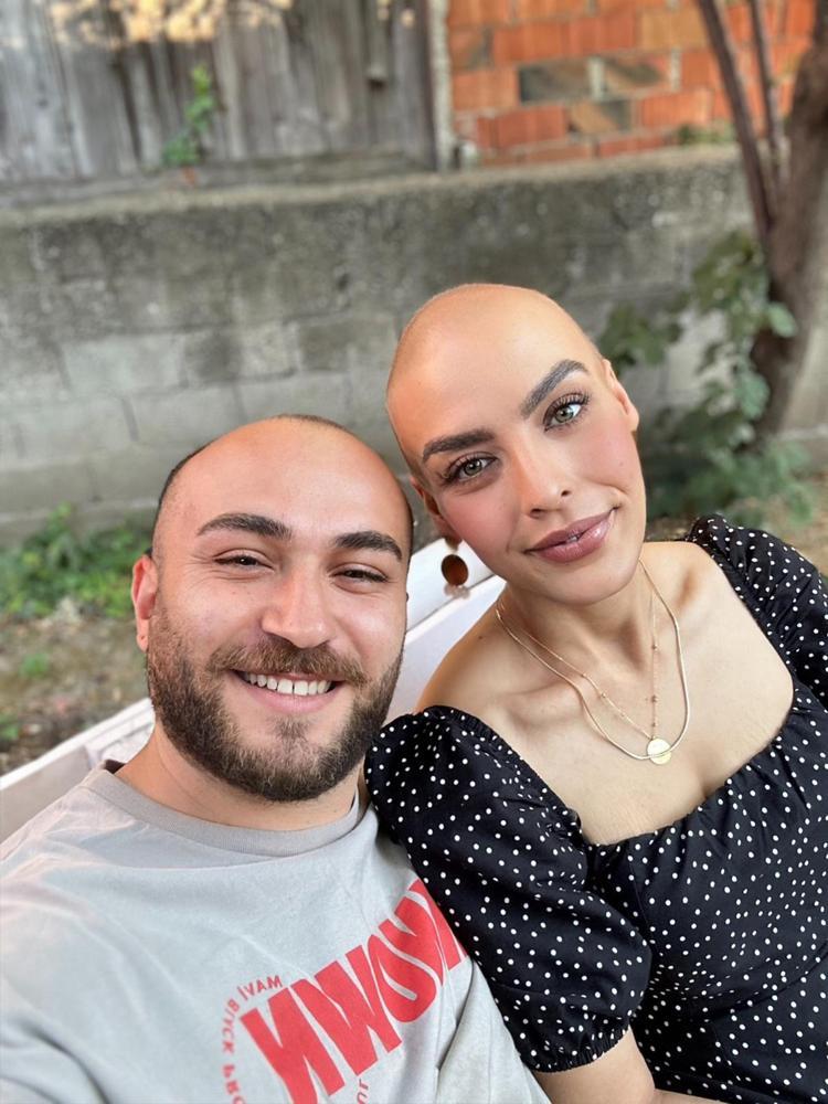 Saçını kazıtan eşinin desteği ile meme kanserini yendi