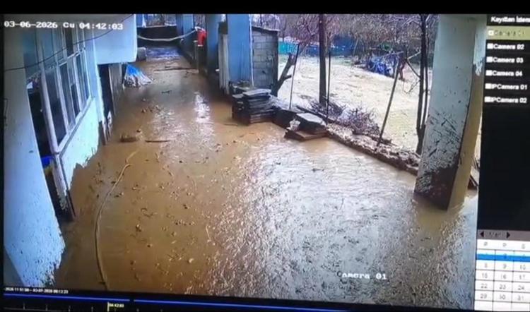 Şırnak'ın Uludere ilçesine bağlı Taşdelen köyünde sağanak sonrası muhtarlık ofisini su bastı. İçeridekilerin kaçış anı güvenlik kamerasına yansıdı.