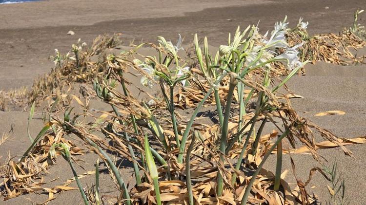 Hatay'ın Samandağ ilçesinin 14 kilometre uzunluğundaki sahilini süsleyen kum zambakları, güzel görüntüler oluşturuyor. Koruma altındaki kum zambaklarını koparmanın cezası ise 557 bin 212 TL.