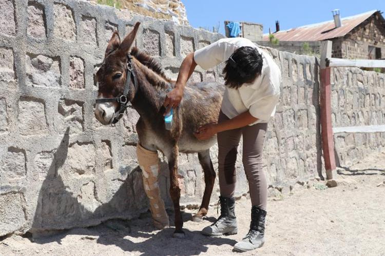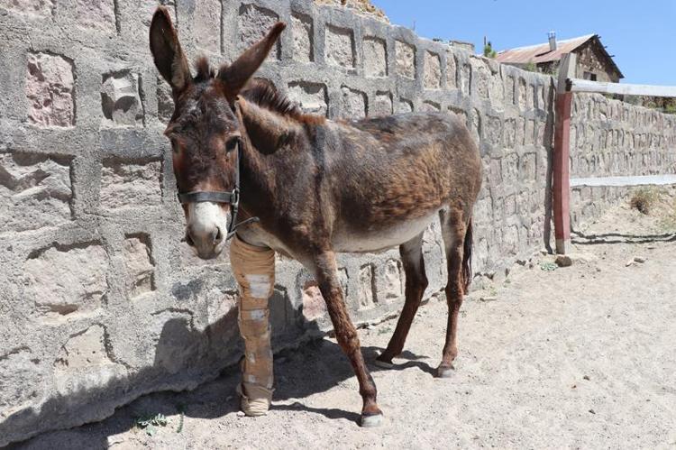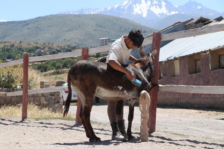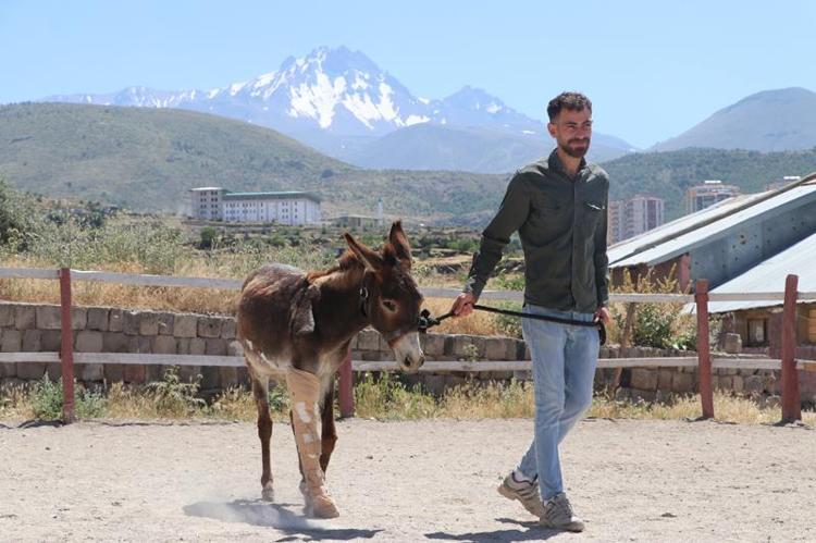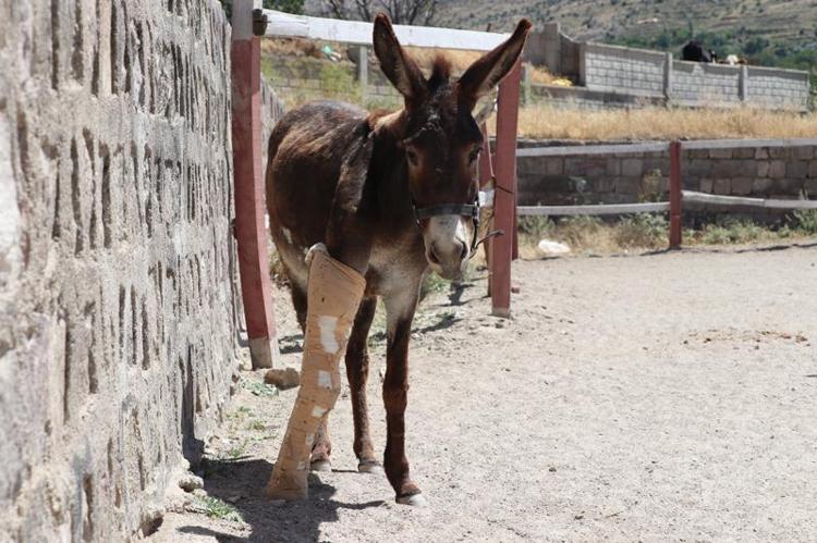 Tomarza ilçesinde bir eşek, sağ ön ayağındaki aksama ve sağ gözündeki görme kaybı nedeniyle sahipleri tarafından terk edildi. Uzun süre bakımsız kalan eşeği görenler, durumu yetkililere bildirdi. Belediye ve Kayseri Hayvanları Koruma Derneği (KAYHAKDER) ekipleri, harekete geçti. Erciyes Üniversitesi Veterinerlik Fakültesi'ne getirilen eşek, burada tedavi altına alındı. 9 yaşındaki eşeğin ön ayağına alçı tedavisi uygulandı.