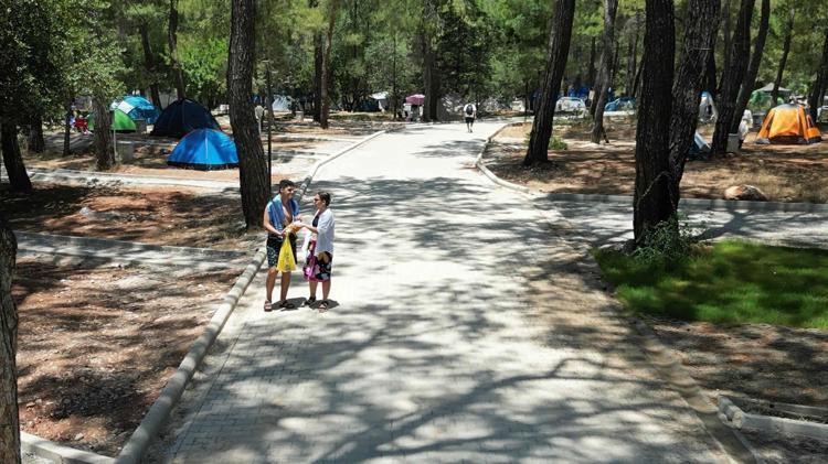 Gökova Körfezi kıyısındaki kamp alanına gelen tatilciler, çam ağaçlarının gölgesine kurdukları çadır ve karavanlarda konaklıyor. Günlüğü 450 ile 1000 lira arasında değişen fiyatlarla konaklama imkanı sunulan alanda, 600 dönümlük arazide yaklaşık 300 çadır yer alıyor. Sabahın erken saatlerinde denize girerek güne başlayan tatilciler, kahvaltılarını doğayla iç içe yapma fırsatı buluyor. Muğla Vakfı tarafından işletilen kamp alanında güvenlik için giriş-çıkışlar görevliler tarafından kayıt altına alınıyor.