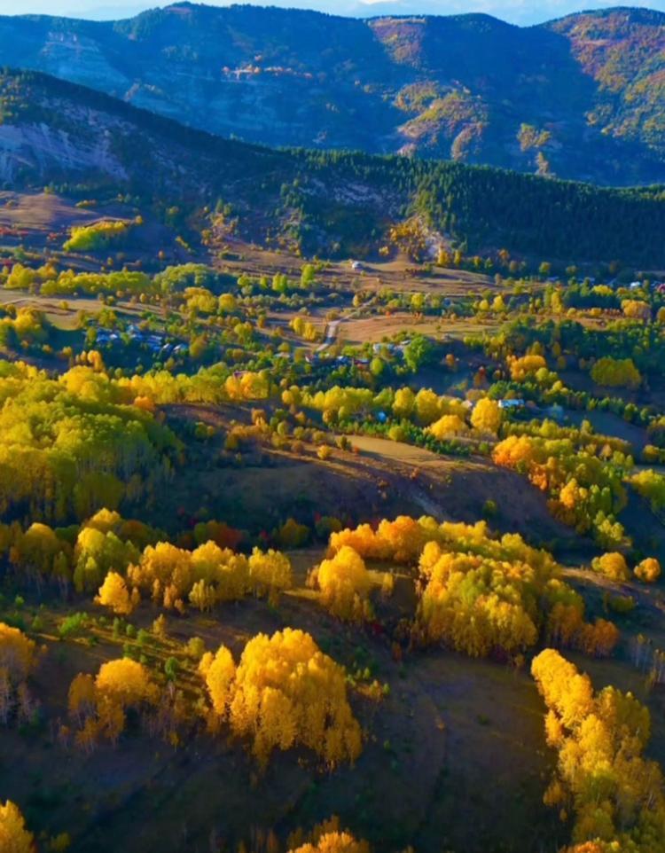 Artvin'in 'sakin şehir' ünvanlı Şavşat ilçesi, sonbaharda renk cümbüşüne dönüştü. Sahara Milli Parkı, Karagöl ve Meydancık bölgelerinde sonbaharla renk değiştiren bitki örtüsü ve ortaya çıkan güzel görüntüler, dron kamerasına yansıdı.