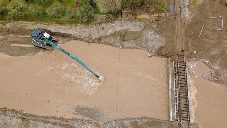 Kabazlı Deresi'nde meydana gelen taşkın nedeniyle demir yolu hattı zarar gördü. Devlet Demir Yolları ekipleri, demir yolu hattında bakım ve onarım çalışması yaparken, Devlet Su İşleri Müdürlüğü ve Salihli Belediyesi ekipleri de dere yatağında temizleme çalışması başlattı.