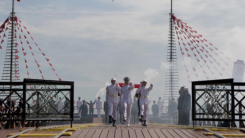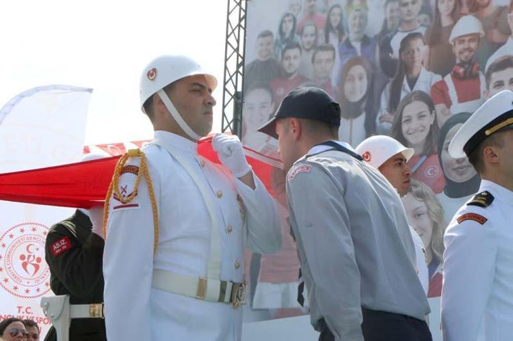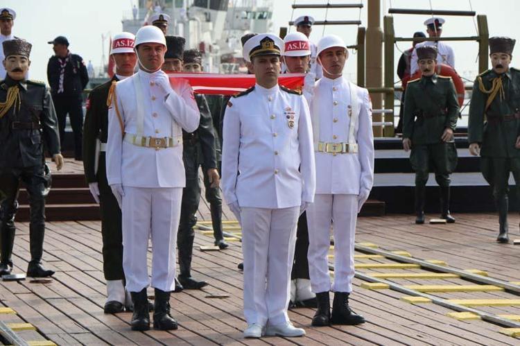 Saygı duruşunda bulunulması ve İstiklal Marşı'nın okunmasıyla başlayan törende, Atatürk'ün 19 Mayıs 1919'da karaya çıkışını sembolize eden Türk bayrağı, 1 deniz subayı, 2 deniz eri ve 2 piyade askeri tarafından taşınıp, karaya çıkarıldı.