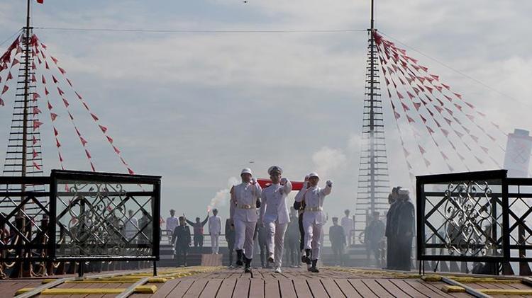 Mustafa Kemal Atatürk'ün Samsun'a çıkışının 105'inci yıl dönümü etkinlikleri kapsamında, Atatürk Anıtı'nda çelenk sunumunun ardından Kurtuluş Yolu'nda Bandırma Vapuru'nu simgeleyen ve o dönem 'Tütün İskelesi' olarak bilinen yerde inşa edilen alanda, tören düzenlendi.