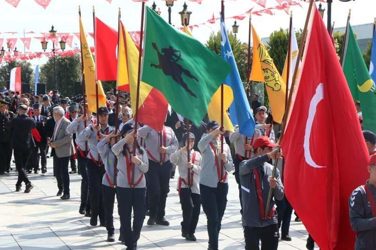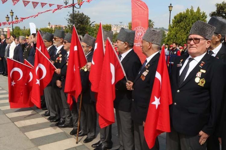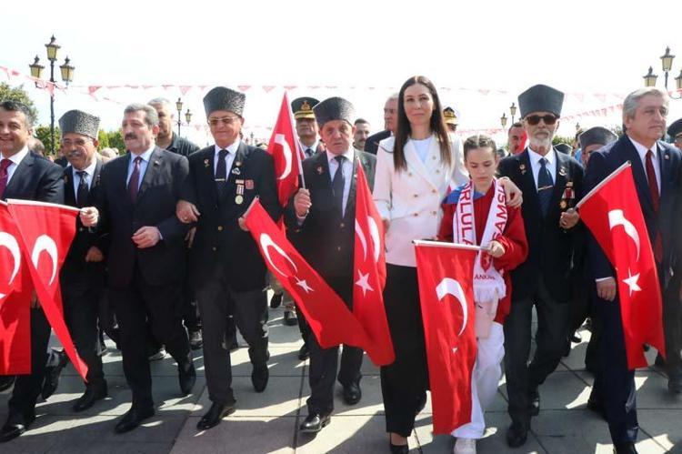 O gün Samsun'umuzda yakılan meşaleyle adeta küllerinden doğan; birlik, beraberlik ve kardeşlik ruhuyla Kurtuluş Savaşı'ndan zaferle çıkan aziz Türk milleti, Cumhuriyet'imizin ilanıyla tarih sahnesinde yeniden dirilmiştir. Tam 105 yıl sonra bugün, o tarihi anın milli ve manevi atmosferini yüreğimizde hissediyor, şanlı Türk bayrağımızı coşku ve gururla temsili olarak aynı noktadan karaya çıkartarak, istikbalimizin, Cumhuriyet'imizin ve 'Türkiye Yüzyılı'nın en büyük teminatı, Türk gençliğine teslim ediyoruz.