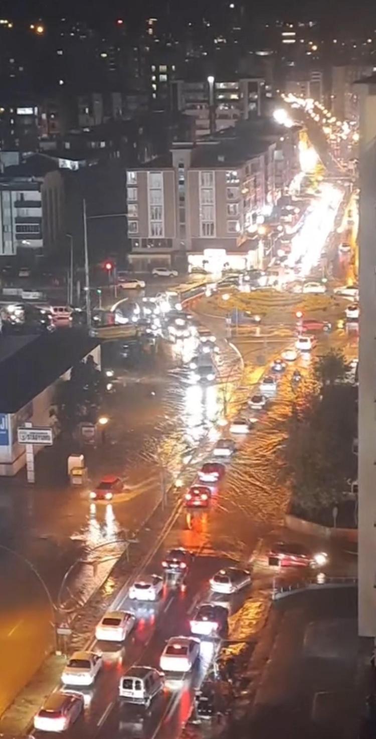Yağışın ardından bazı bölgelerde su birikintileri sele neden olurken, araçlar trafikte ilerlemekte güçlük çekti.