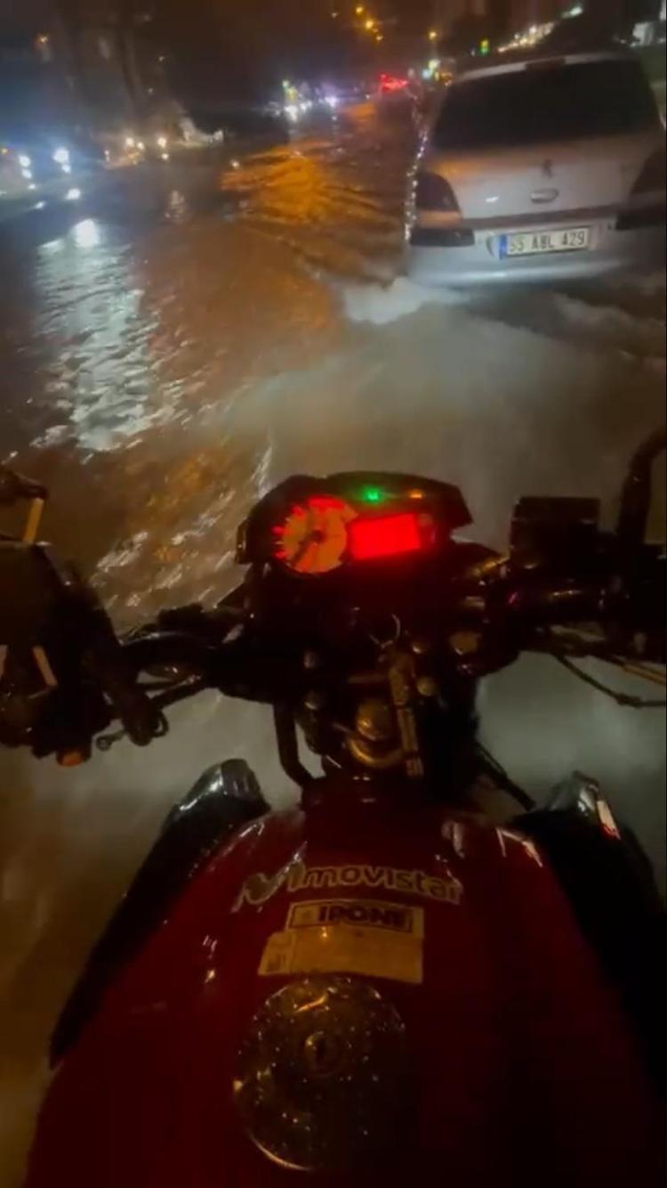 Atakum, İlkadım ve Canik ilçelerinde kısa sürede etkili olan sağanak yağış nedeniyle cadde ve sokaklar göle döndü.