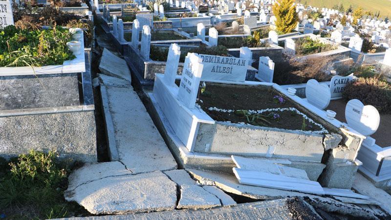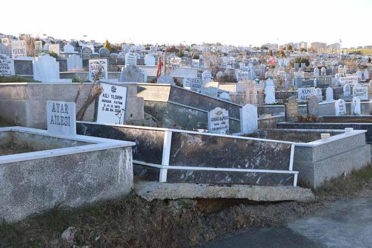 Umut Altun (45) ise "Yollar çok bakımsız. Her taraf kaymış. Mezarların araları kademe kademe olmuş. Bu mezarlığı yaparken düzlemeleri gerekiyordu. Eskiden buralar heyelan yeriydi.