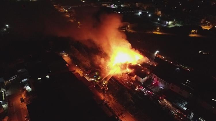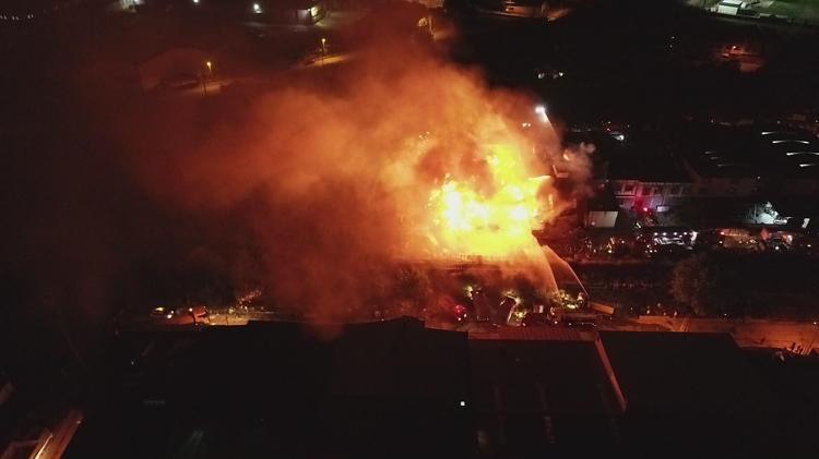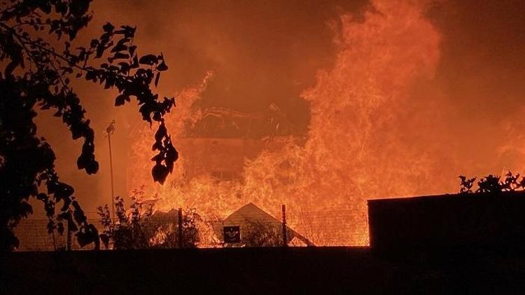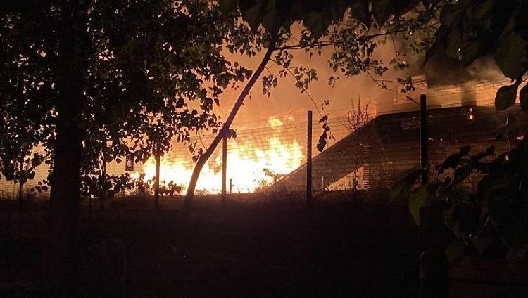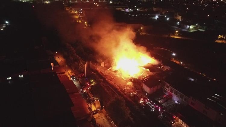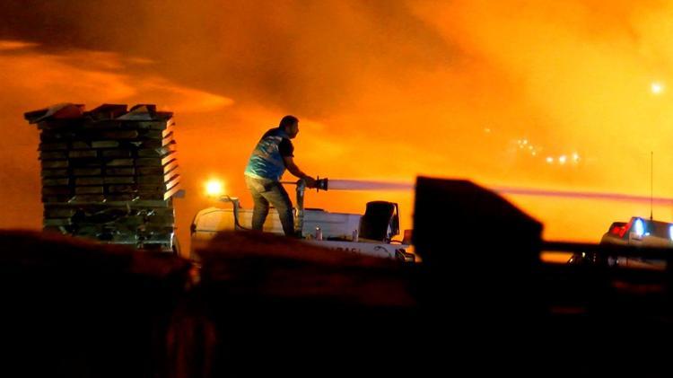 Yanıcı ve ahşap malzemeler nedeniyle yangın kısa sürede büyüdü. İtfaiye ekipleri yangına müdahale ederken, alevler onlarca metre yüksekliğe ulaştı, gökyüzü kara bulutla kaplandı.