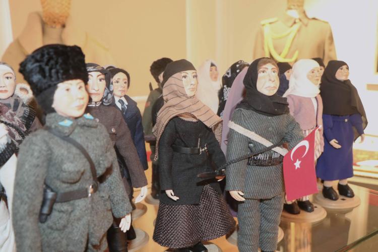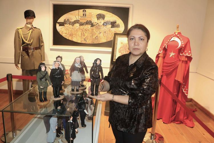 Dönemin artık yünse yünden, pamuksa pamuktan, o dönemde ne bulmuş giymişlerse o kıyafetleri mümkün mertebe çalışmaya gayret ettik. Yine aynı şekilde başörtülerinde, oyalarında, çoraplarında ya da ayağında giydiği, çarığında kullandığı, silah gibi her neyse onları temin etmeye çalıştık ve atölyelerimizde birebir üreterek koleksiyonlarımızı oluşturduk. Milli Mücadele Kadın Kahramanları koleksiyonu hem minyatür olarak çalışıldı yani kitre bebek boyutunda çalışıldı hem de bire bir kişi boyutunda çalışıldı” ifadelerini kullandı.