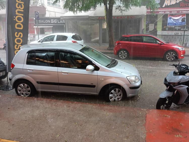 Yaklaşık 5 dakika süren sağanak, cadde ve sokakları göle çevirdi. Yağmur sonrası ev ve iş yerlerine gitmek isteyenler ile araç sürücüleri zor anlar yaşadı.
