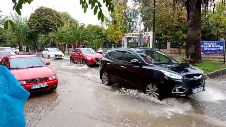 Samsun’da yaklaşık 5 dakika etkili olan sağanak nedeniyle cadde ve sokaklar göle döndü.