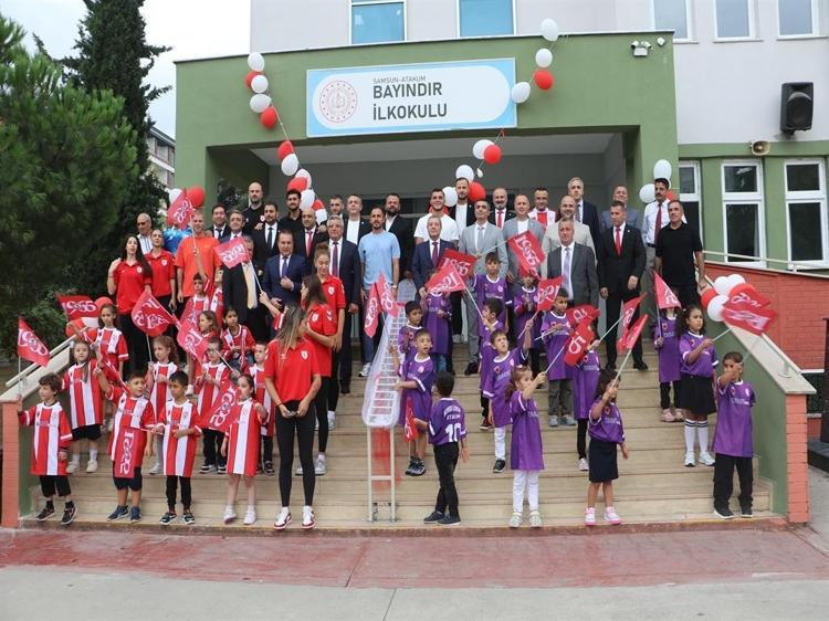 Samsunspor Kulübü, 'Bu Şehrin Çocukları Samsunsporludur' projesi kapsamında Atakum Bayındır İlkokulu’nda 1’inci sınıfa başlayan öğrencilere defter ve kalem hediye ederek etkinlik düzenledi. Program dahilinde Samsun’da 20 bin 1’inci sınıf öğrencisine Samsunspor desenli defter ve kalem dağıtımı yapılacak. Bayındır İlkokulu’nda düzenlenen etkinliğe, Samsun Vali Yardımcısı Bilal Bozdemir, İl Milli Eğitim Müdürü Murat Ağar, Samsunspor Kulübü yönetimi, takım kaptanı Zeki Yavru, futbolcular Soner Aydoğdu, Rick Van Drongelen ve Yunus Emre Çift’in yanı sıra Samsunspor Voleybol Takımı oyuncuları katıldı. Çocukların başarılarının tüm dünya için çok önemli olduğunu belirten Zeki Yavru, “Yeni eğitim-öğretim yılı, tüm ülkemize, milletimize, başta baş tacı öğretmenlerimize, öğrenci kardeşlerimize hayırlı uğurlu olsun. Başarılı bir yıl olsun hepsi adına. Burada arkadaşlarımız, başkanımız Veysel Bilen, yönetici abilerimizle bu etkinlikte hep birlikteyiz. Çocukların mutluluğu bizler için çok önemli. Bütün dünyadaki çocukların mutluluğu bizim için önemli” diye konuştu.