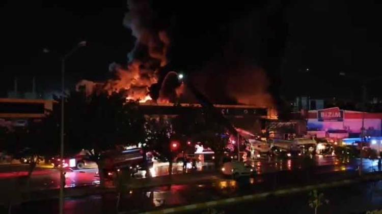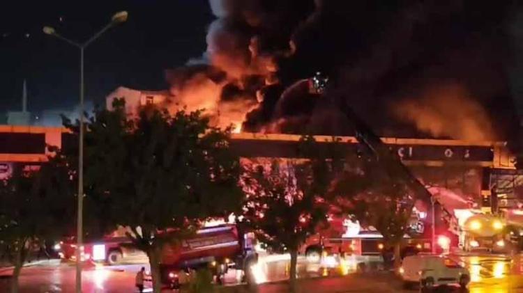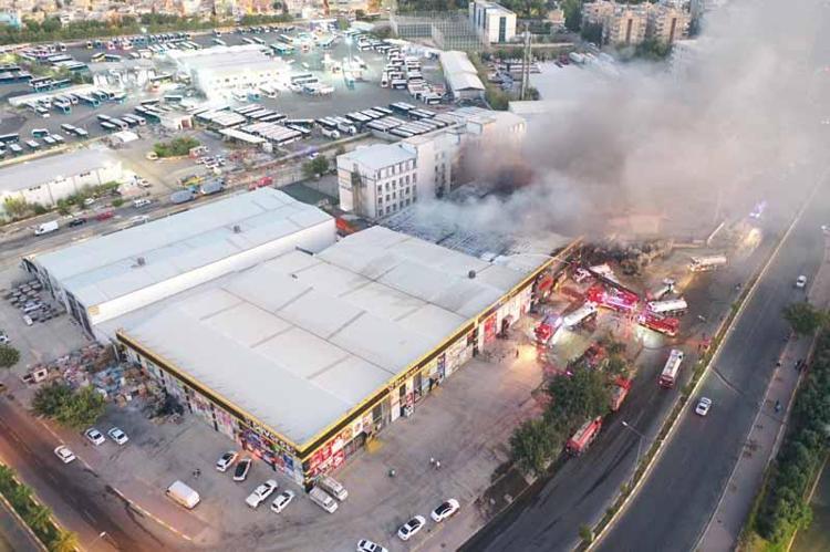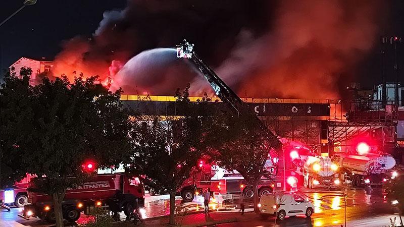 Şanlıurfa'da iş yeri yangını; çatının bir bölümü çöktü