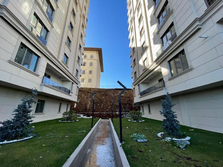 Şanlıurfa’da, yapımı kısa süre önce tamamlanan kaymakamlık binası ile bir sitenin arasında bulunan istinat duvarının çökmesi sonucu 4 dairede hasar meydana geldi.