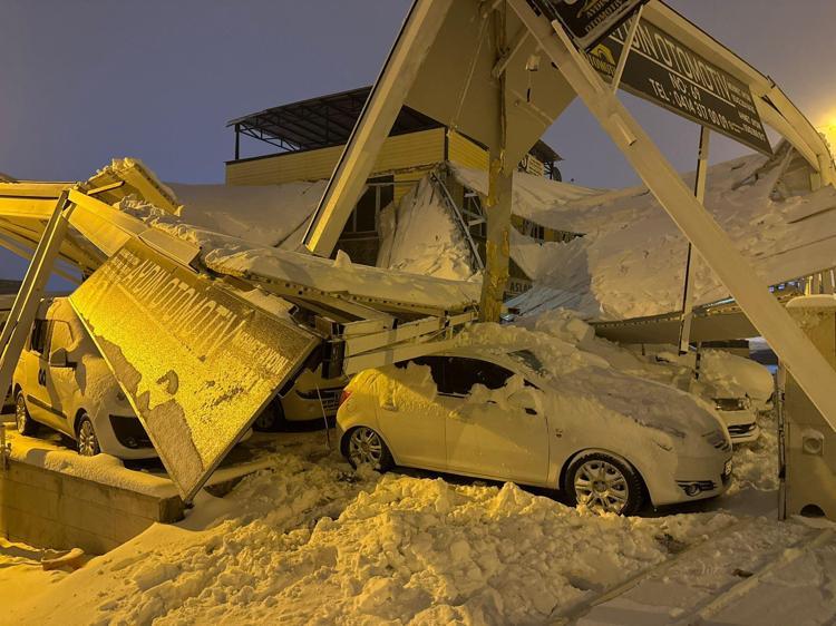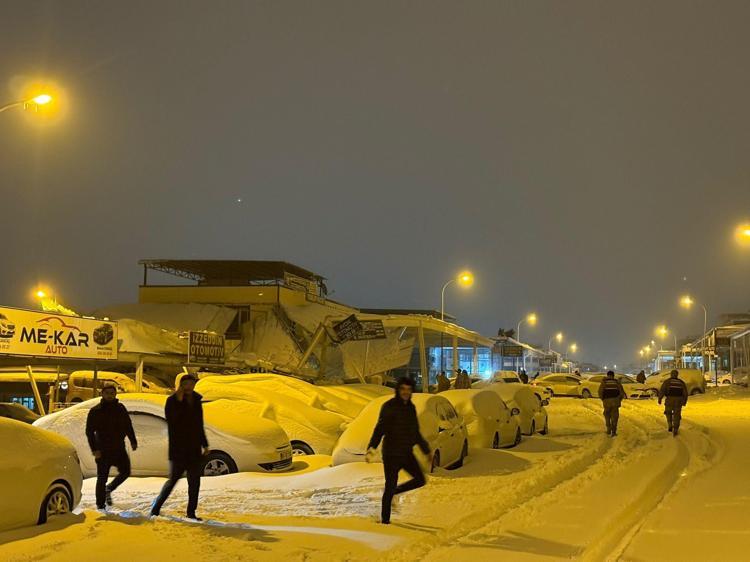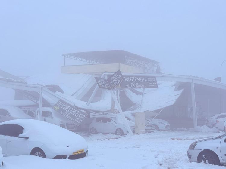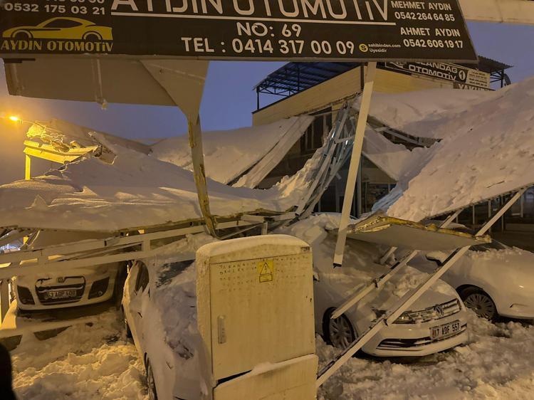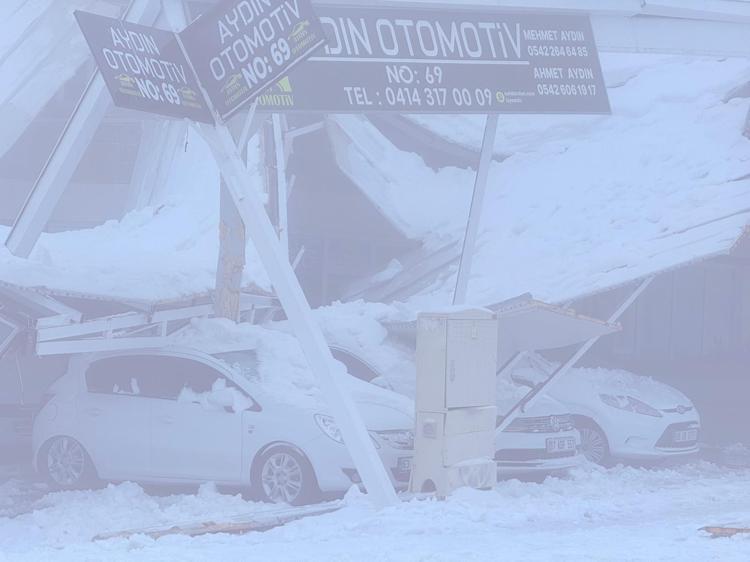 Şanlıurfa’da bazı iş yerleri ile oto galeri dükkanlarında araçların bulunduğu alanların çatıları, üzerlerine biriken karın ağırlığına dayanamayarak çöktü, 67 araç hasar gördü.