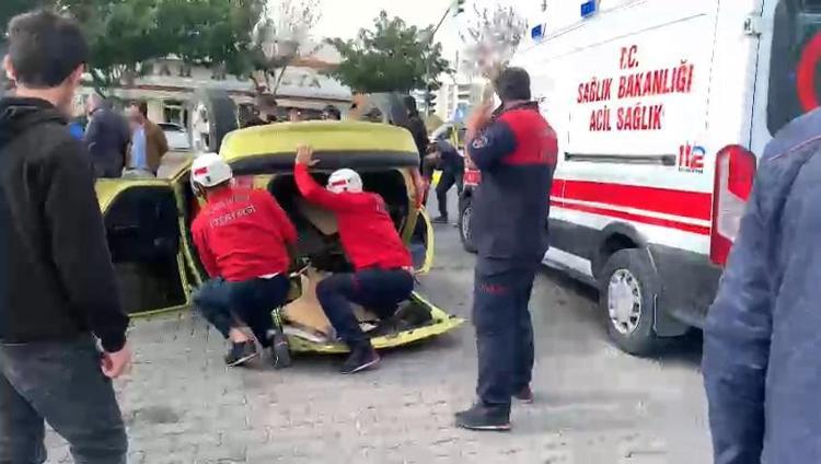 Kazayı gören çevredekiler, araç içinde sıkışanları kurtarmak için seferber oldu.