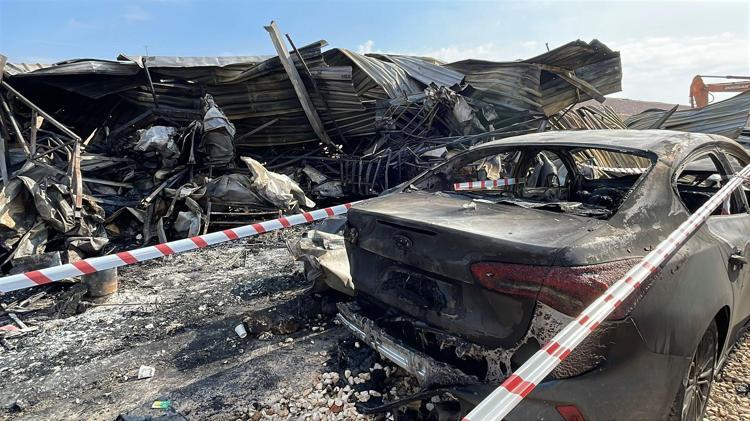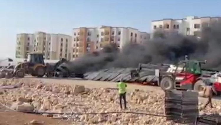 Şantiye alanında 1 konteyner ile 4 araç yandı