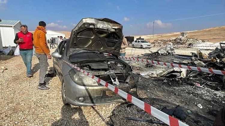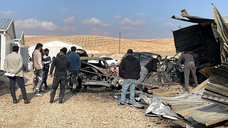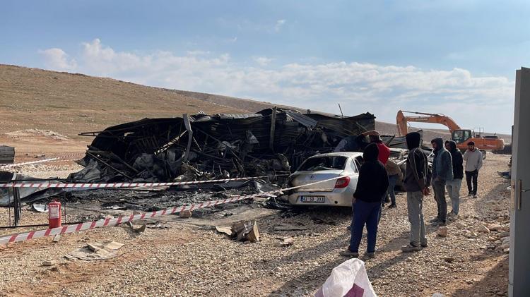 Şanlıurfa'da şantiye alanında çıkan yangında, işçilerin kullandığı konteyner ile park halindeki 4 araç yandı.