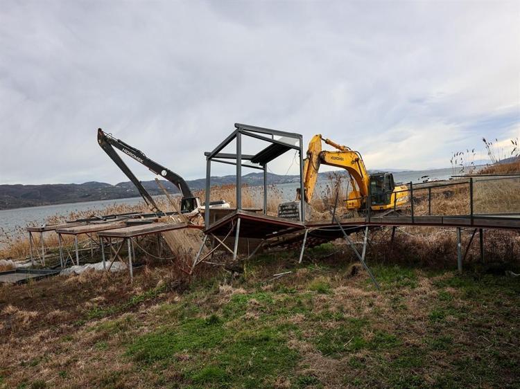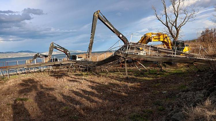 Sakarya'nın Sapanca ilçesinde 6 kilometrelik göl kıyısındaki hat üzerinde bulunan 89 kaçak iskele ve yapı, iş makineleriyle yıkıldı.