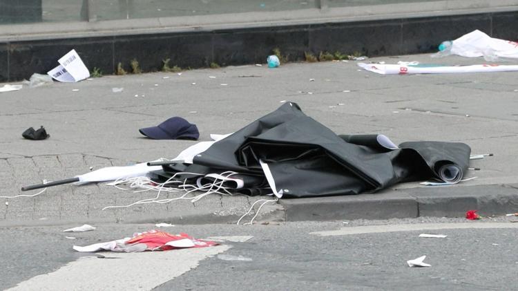 1 Mayıs Emek ve Dayanışma günü nedeniyle Saraçhane Meydanı'nda toplanan grupların dağılmasının ardından geriye flamalar, su şişeleri ve polis ekiplerine atılan taşlar kaldı.