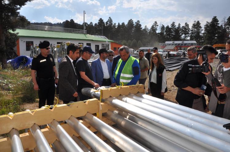 Kristal karı, çam ağaçlarının arasındaki uzun pistleri, güneşi, doğası ve son model tesisleriyle kış turizminin önemli kayak merkezlerinden olan Kars'ın Sarıkamış ilçesindeki 2 bin 634 rakımlı kayak merkezine suni karlama sistemi kurulum çalışması başlatıldı.