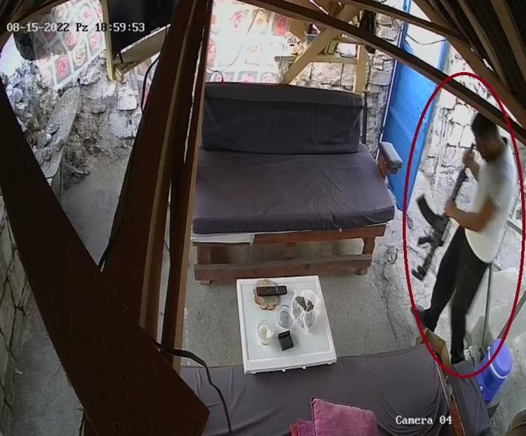 Diğer yandan Metin Işık'ın elindeki tüfeği sağa, sola çevirerek baktıktan sonra oğluna verdiği, Mustafa Işık'ın ise aldığı tüfeği koltuk altına bırakıp, yukarı çıktığı anlar ortaya çıktı.