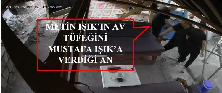 Yine görüntülere göre; olaydan önce Mustafa Işık'ın evlerinin avlusu içine girerek kapı arkasındaki döner bıçağını kılıfından yarıya kadar çıkartıp, bir süre bakıp, tekrar bıraktığı, bir süre gezindikten sonra av tüfeğini çıkartarak eline aldığı, bir süre kontrol edip, bahçe tuvaletine bıraktıktan sonra babası Metin Işık'ın yanına çıktığı görüldü.
