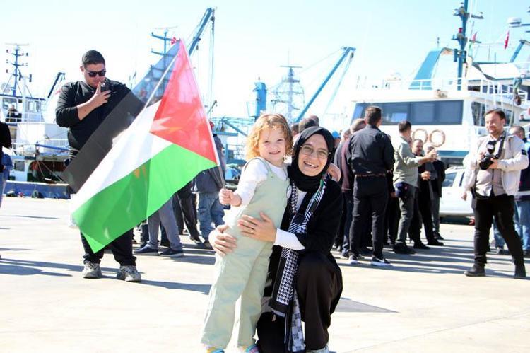 Yine çocuklarımızın yüzüne her sabah kalktığımız zaman, utanmadan bakabilmek için bugün burada Filistinli ve Gazzeli kardeşlerimizin yanında olduğumuzu yine belirtmek için burada bulunuyoruz. Sumud Filosu’nun değerli katılımcılarına, insanlığın vicdanını temsil eden değerli katılımcılarına destek olmak için biz bugün buradayız.