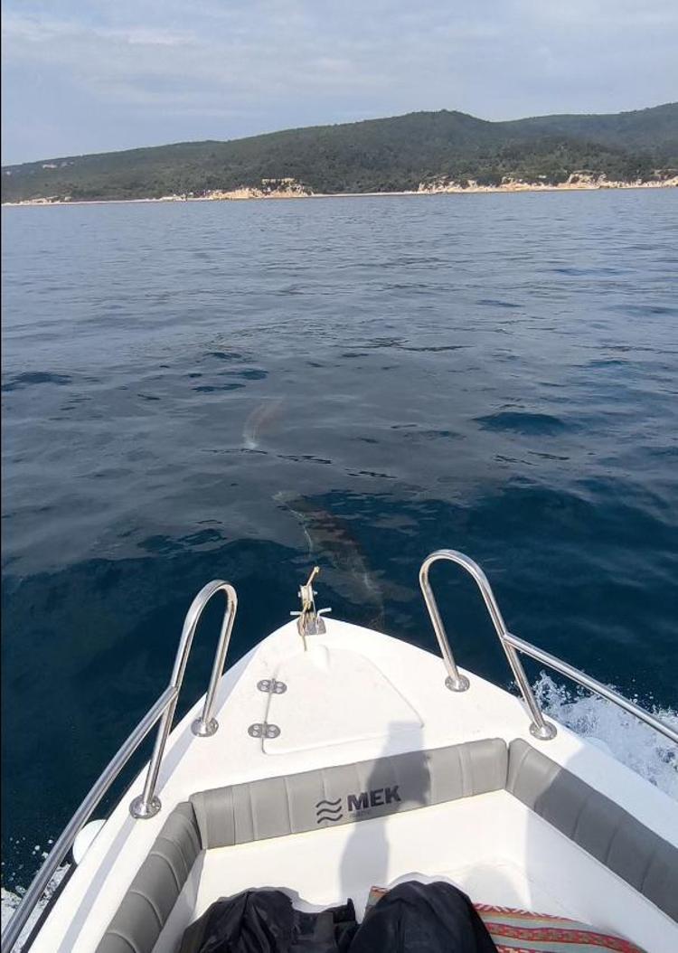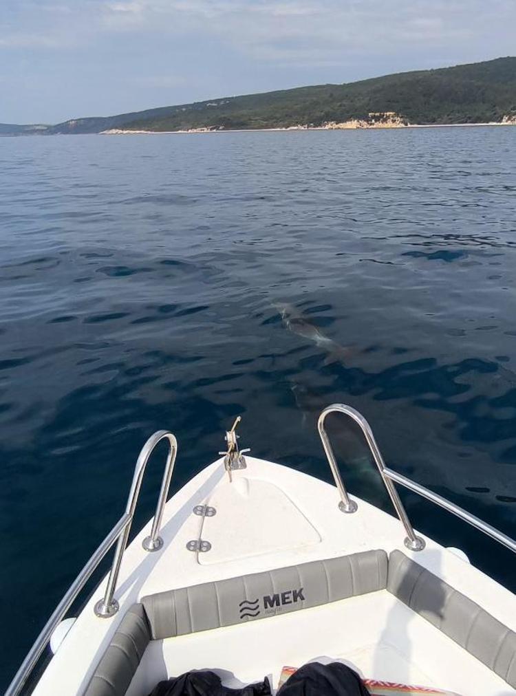 Edirne’nin Saros Körfezi’ne kıyısı bulunan Keşan ilçesine bağlı Gökçetepe köyü sahilinde teknenin yanında yüzen yunuslar, cep telefonuyla görüntülendi.