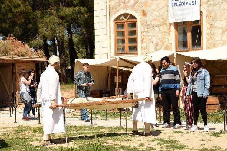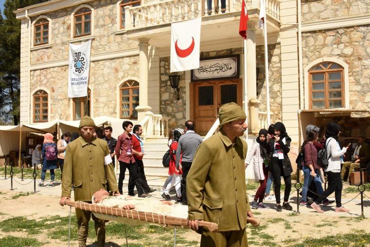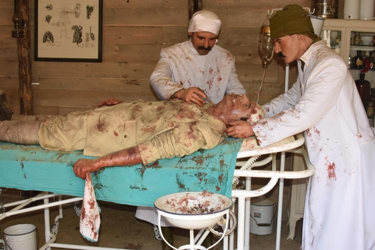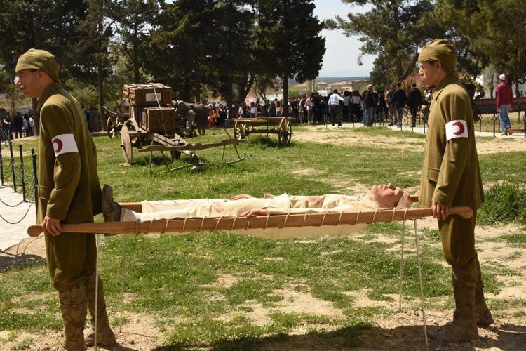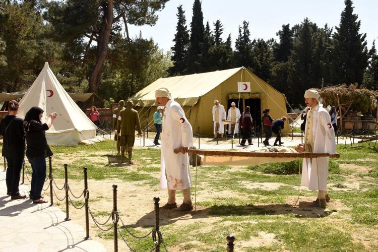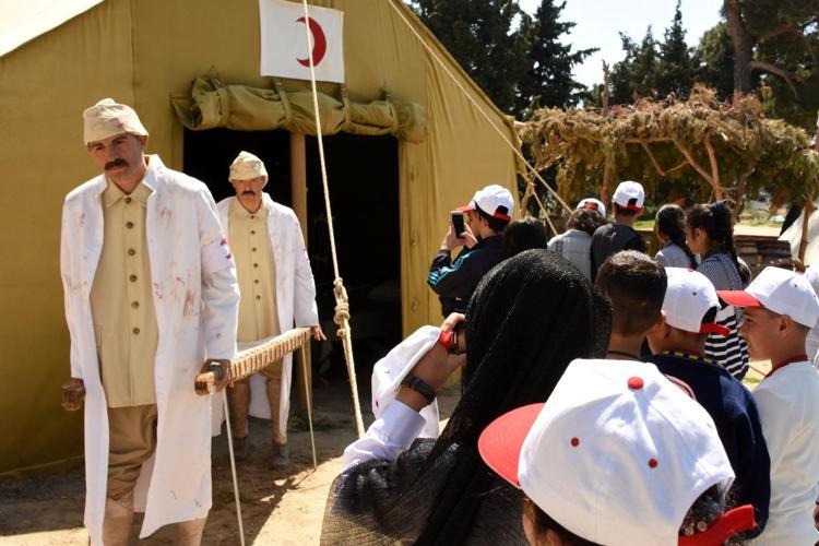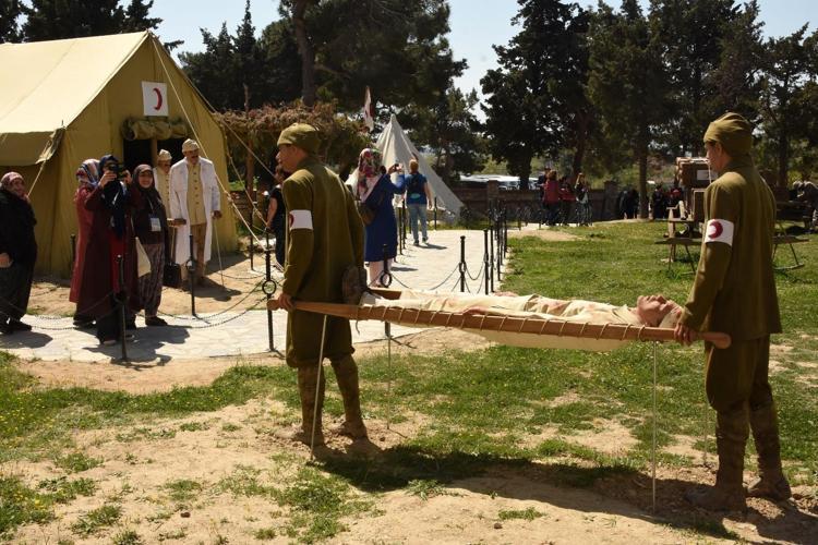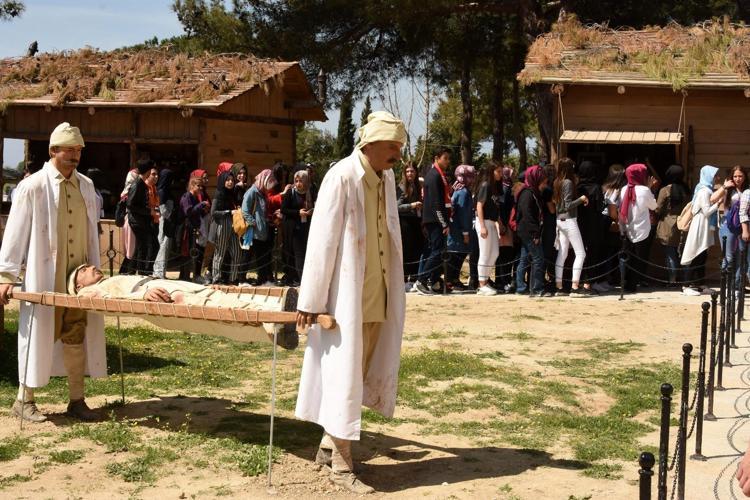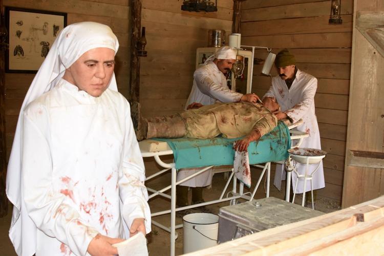 103 yıl önce vatanı için gözünü kırpmadan cephede çarpışırken yaralanan Mehmetçiklerin tedavi edildiği, şehit düşen askerlerin defin işlemlerinin canlandırıldığı sahneler, ziyaretçilere duygu dolu anlar yaşatıyor.