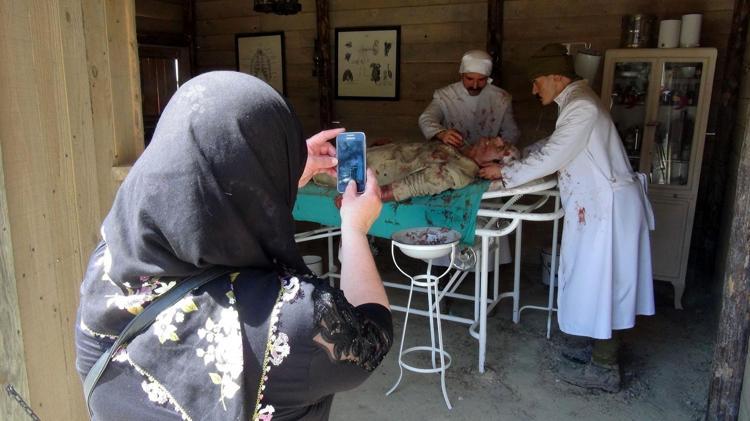 Savaşın acı yüzünün sahnelendiği sahra hastanesi sergisini, her gün yüzlerce kişi ziyaret ediyor.