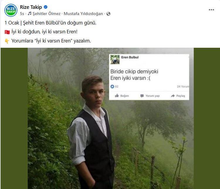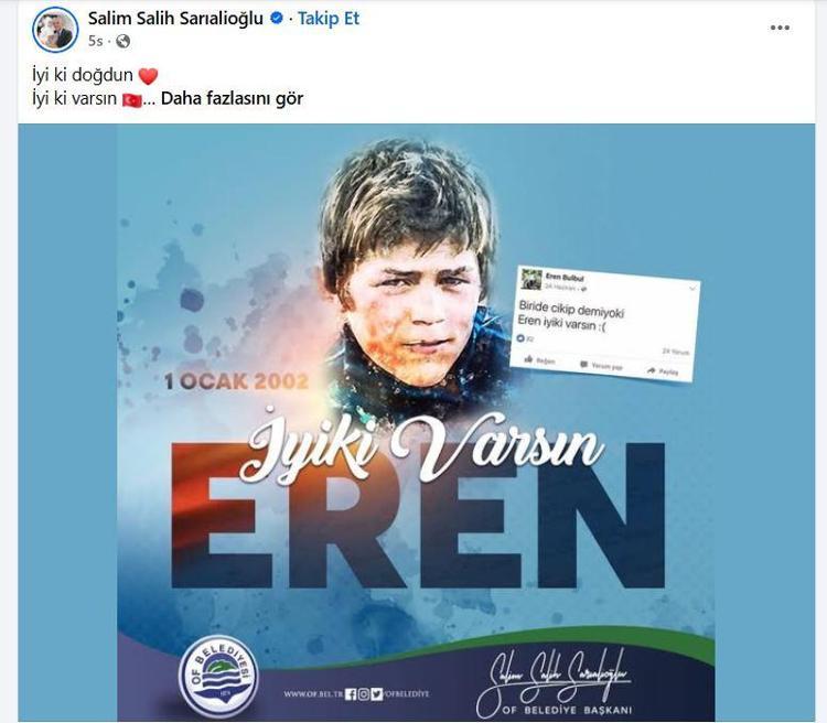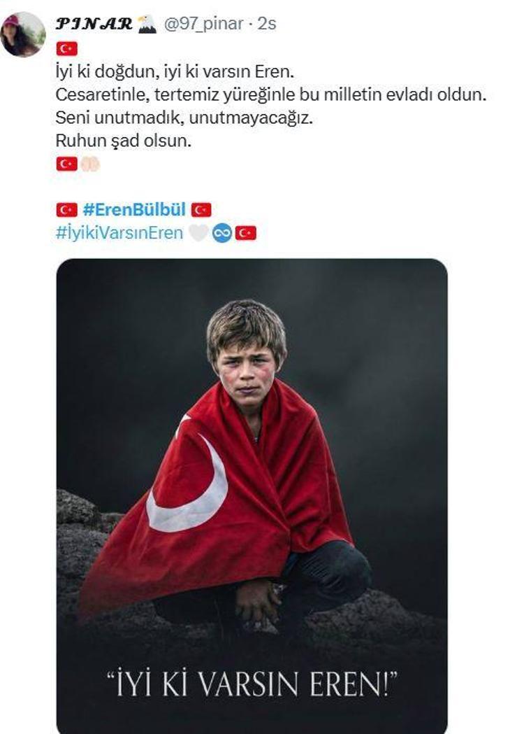 Ruhun şad olsun’, 'İyi ki varsın Eren, doğum günün kutlu olsun', 'İyi ki varsın Eren, bu millet seni asla unutmayacak', yorumlarıyla sayfalarında paylaşıp, kutlama ve anma mesajları yayımladı.