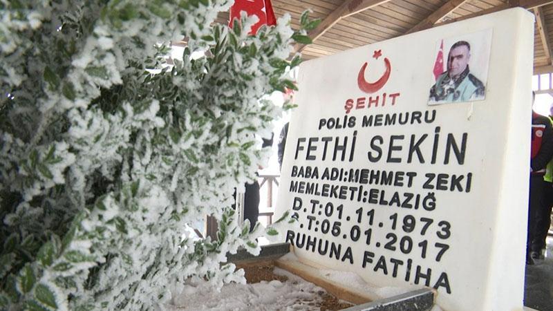 İzmir'de, 2017 yılında adliyeye yönelik terör saldırısını canı pahasına önleyen polis memuru Fethi Sekin, şehadetinin 9 yılında, Elazığ'ın Baskil ilçesine bağlı Doğancık köyündeki kabri başında anıldı.