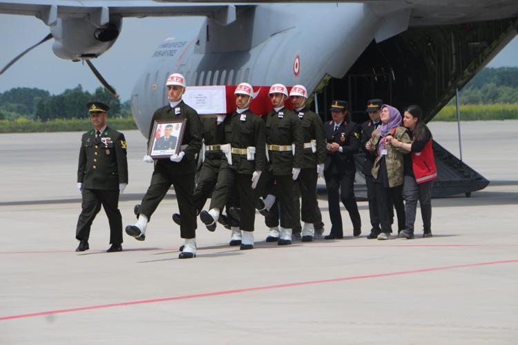 Pençe-Kilit Operasyonu bölgesinde teröristlerin taciz ateşinde şehit olan Piyade Uzman Çavuş Ramazan Gök'ün cenazesi, Hakkari'deki törenin ardından askeri uçakla Tokat Havalimanı'na getirildi.