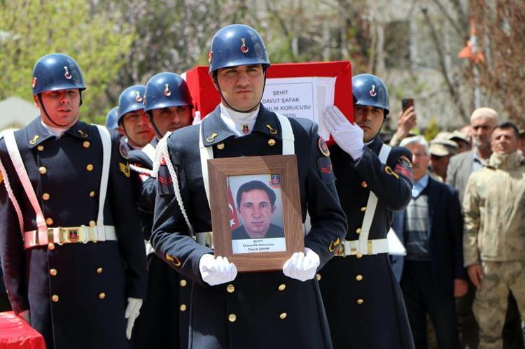 Irak’ın kuzeyinde görev yaptığı harekat bölgesinden dönüşte geçirdiği kalp krizi sonucu şehit olan güvenlik korucusu Davut Şafak (39), memleketi Van'ın Gürpınar ilçesinde son yolculuğuna uğurlandı.