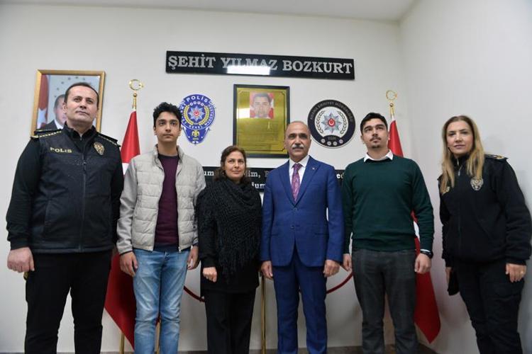 Adana’nın Seyhan ilçesinde yapımı tamamlanan polis merkezine, 2016’da aynı mahallede evrak dağıttığı sırada uğradığı silahlı saldırı sonucu şehit olan polis memuru Yılmaz Bozkurt’un adı verildi. Şehit oğlunun öz geçmişinin okunduğu sırada anne Alime Bozkurt gözyaşı döktü. Şehidin oğlu Görkem Hasan Bozkurt, “Babam yıllarca vatanı için bu bölgede görev yaptı ve burada şehit oldu. Onun adına böyle bir şey yapılması beni ve ailemi gururlandırdı” dedi.