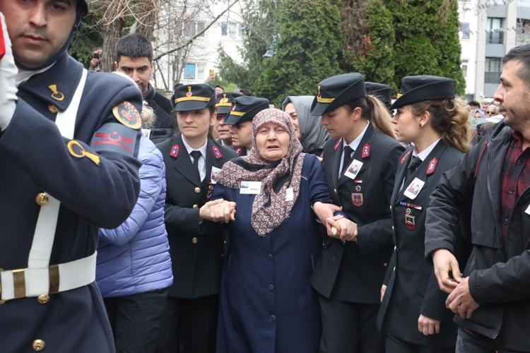 Benim kocam burada yatıyor. Ne olursun kalksın” diye gözyaşı döktü. Şehit Jandarma Pilot Kıdemli Albay Oğuzhan Adalıoğlu’nun cenazesi Vişnelik Hava Şehitliği’nde gözyaşlarıyla toprağa verildi.