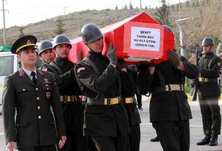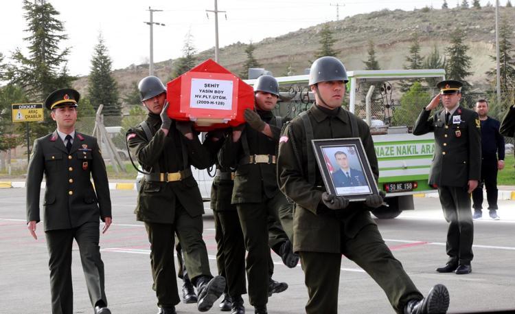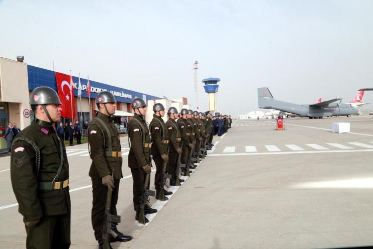 Nevşehir'in Gülşehir ilçesi Ovaören Köyü yakınlarında eğitim uçuşu sırasında düşen F-16 savaş uçağının şehit olan pilotu Üsteğmen Yasin Boy için Kapadokya Havalimanı'nda uğurlama töreni düzenlendi.