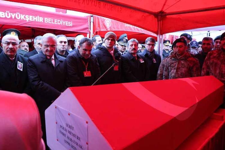 Şehit polis Emre Albayrak'ın cenazesi bugün tören için önce Ladik ilçesi Arnavutlar Mahallesi’ndeki baba ocağına getirildi. Burada helallik alınmasının ardından şehidin cenazesi, Avcı Sultan Mehmet Merkez Camisi’ne götürüldü. Cenazeye İçişleri Bakan Yardımcısı Münir Karaloğlu, Emniyet Genel Müdürü Mahmut Demirtaş, Emniyet Genel Müdür Yardımcısı Ömer Urhal, Özel Harekat Daire Başkanı Ünsal Hayal, Samsun Valisi Orhan Tavlı, Amasya Valisi Önder Bakan, Samsun Büyükşehir Belediye Başkanı Halit Doğan, Samsun Garnizon Komutanı Gazi Tümgeneral Davut Ala, İl Emniyet Müdürü Ahmet Arıbaş, İl Jandarma Komutanı Tuğgeneral Mustafa Bakçepınar ile siyasi partilerin milletvekilleri, il başkanları, emniyet personeli, şehidin yakınları ve vatandaşlar katıldı.